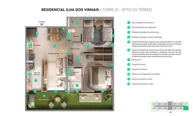 02 Quartos » Sala de Estar e Jantar » Cozinha com Área de Serviço » Banheiro Social » Com ou sem vaga » Com ou sem varanda