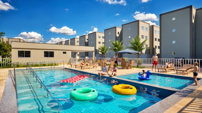 Super Área De Lazer: Piscina Adulto e Infantil » Salão de festa » Salão fitness » Brinquedoteca » Playground » Quadra esportiva » Quiosque com churrasqueira