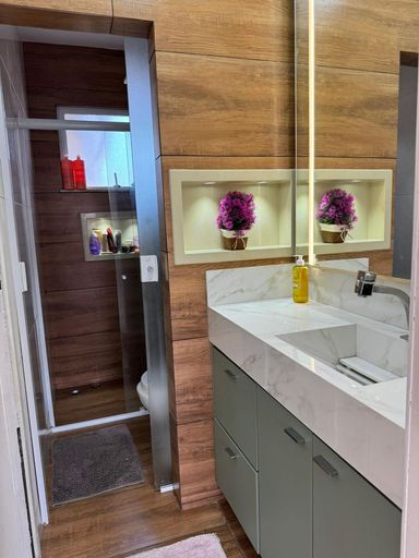 Condomínio com portaria 24 horas e área de lazer.